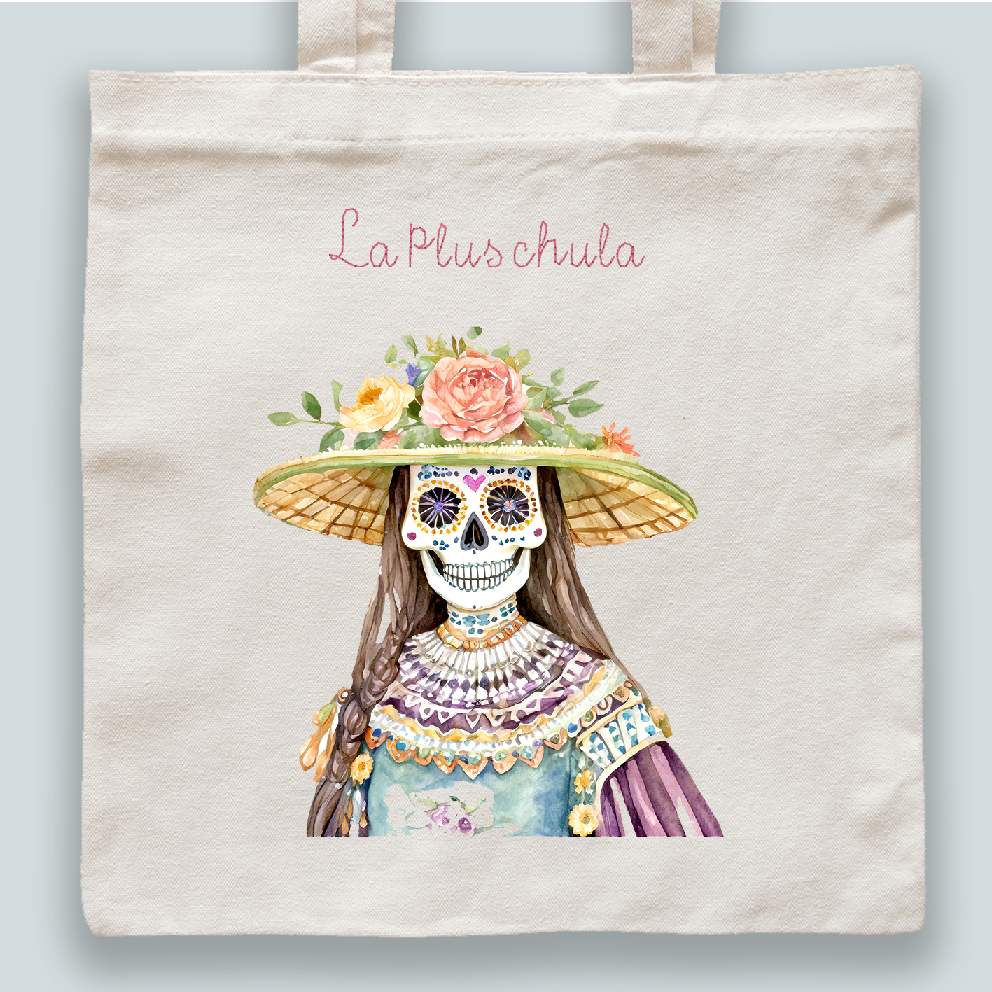 Totebag imprimée avec broderie -La plus chula-et retouché main