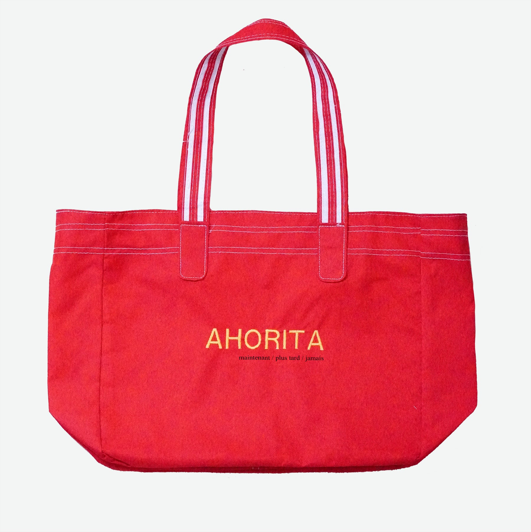 Sac (type tote ou shopper) avec broderie et impression avec le mot ahorita. Poche intérieure zippée Surpiqûres contrastées dans le haut du sac Anses de transport bicolore façon « sellier »