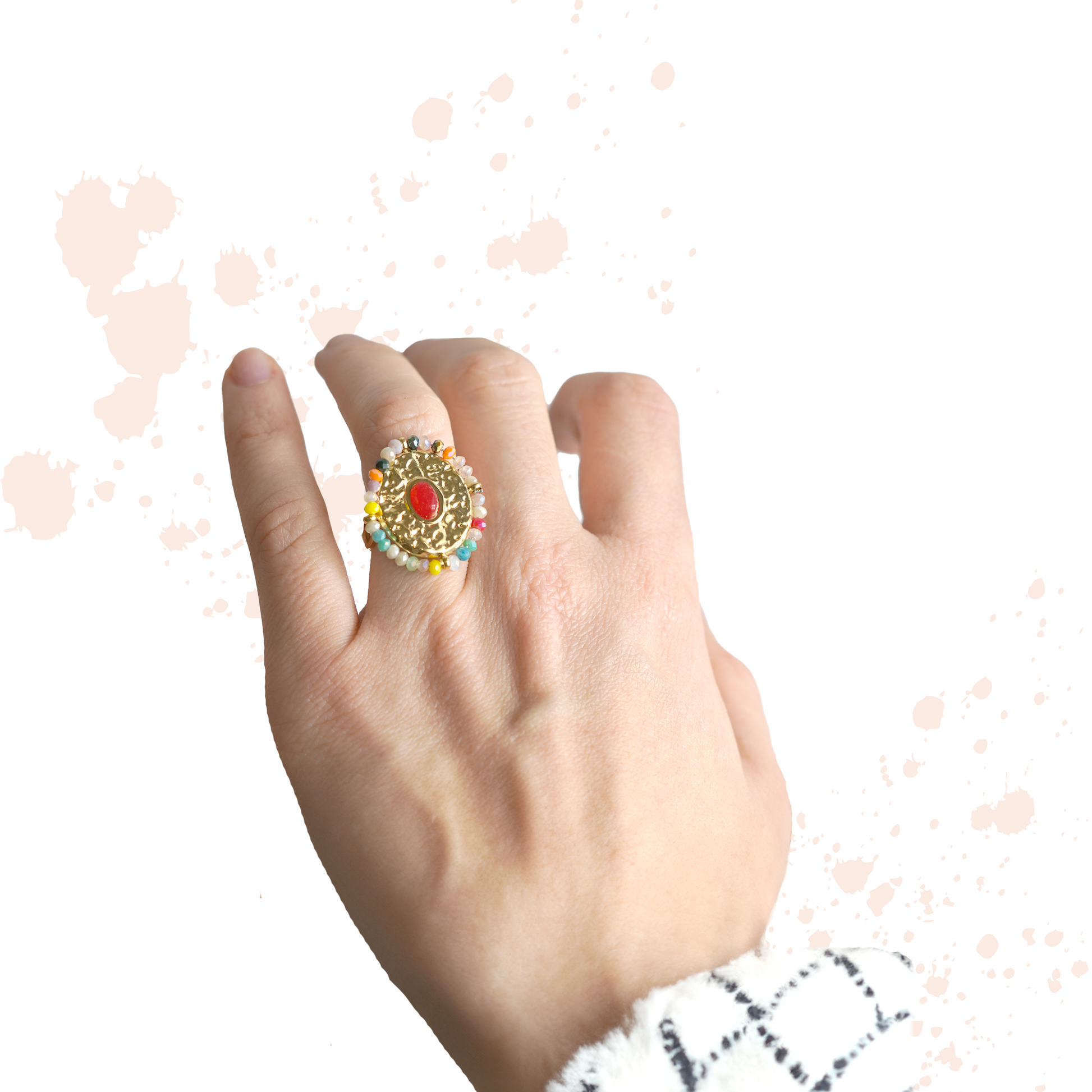 Bague coloré, en acier et cristal baignée a l'or fin.